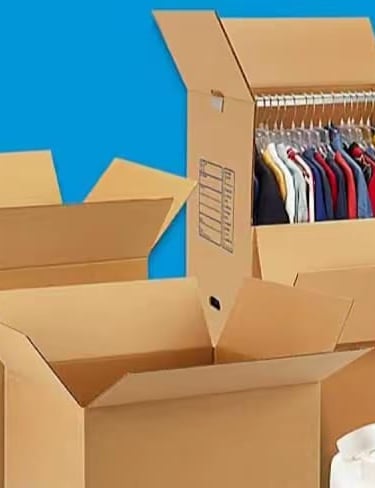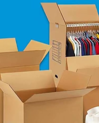 Boxes and packing materials neatly arranged for professional furniture wrapping.